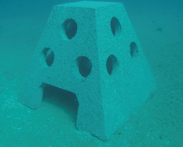 The HR modules have been purpose-built, manufactured locally by Batrosa Concrete Products. Primarily serving as fish habitats, the HR modules provide refuge habitat for both small and large-bodied marine species through the provision of refuge holes and a cave compartment at the base of the structure. Designed with a roughened exterior surface, the HR modules are also specifically crafted to encourage the settlement of marine sessile organisms such as corals.
